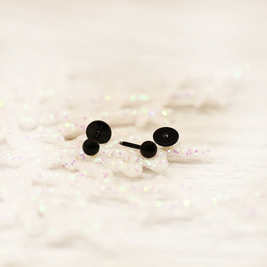 Be comfortable and stylish in ComfyEarrings. Featuring Black Plated 316L Surgical Grade Stainless Steel balls, posts, and backs. Posts are standard width (18 gauge/1.0 mm). Length of post is 6.0 mm long, which is "one size fits most." If you're ordering for small ears, please request free clear spacers in the "order notes."