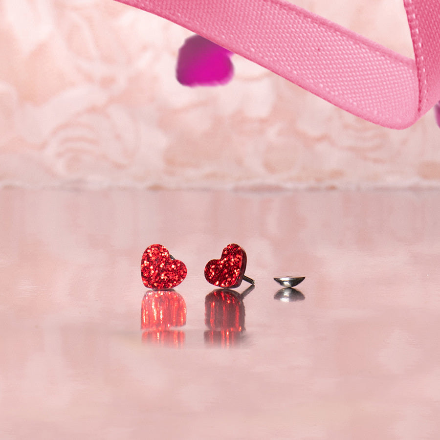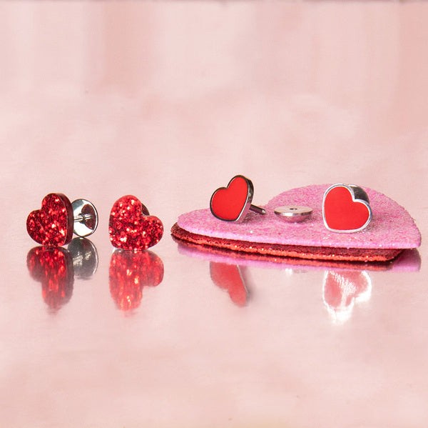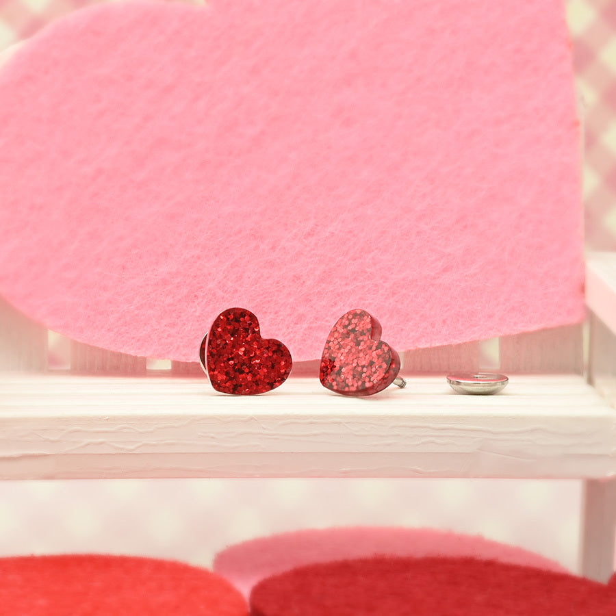 With these gorgeous Red Glitter Heart earrings, you’ll be stylish and sparkly, all day and night. Perfect for you, or to gift to someone you love. These heart-shaped earrings feature sparkling red glitter inside clear resin, and 316L Surgical Grade Stainless Steel posts and backs. Posts are standard width (18 gauge/1.0 mm). Length of post is 6.0 mm long, which is "one size fits most." If you're ordering for small ears, please request free clear spacers in the "order notes."