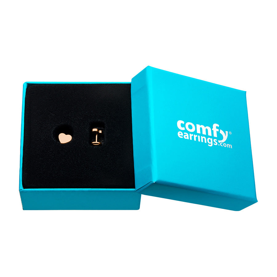 The exclusive screw-on Comfy flat back is just 6.0 mm wide and 2.0 mm thick for maximum comfort and balance. It eliminates pressure on your ears and covers the back of the post to protect your neck from painful pokes (even while sleeping)!