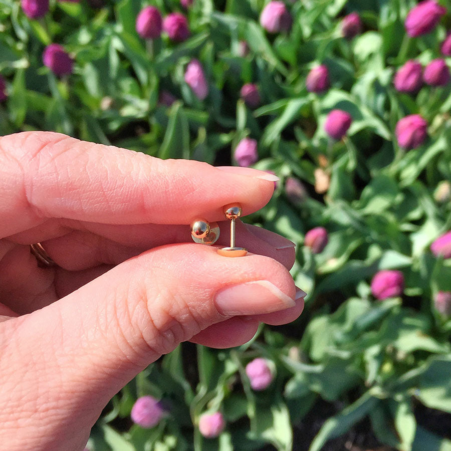 Be comfortable and stylish in ComfyEarrings. Featuring 24K Gold Plated 316L Surgical Grade Stainless Steel balls, posts, and backs. Posts are standard width (18 gauge/1.0 mm). Length of post is 6.0 mm long, which is "one size fits most." If you're ordering for small ears, please request free clear spacers in the "order notes."