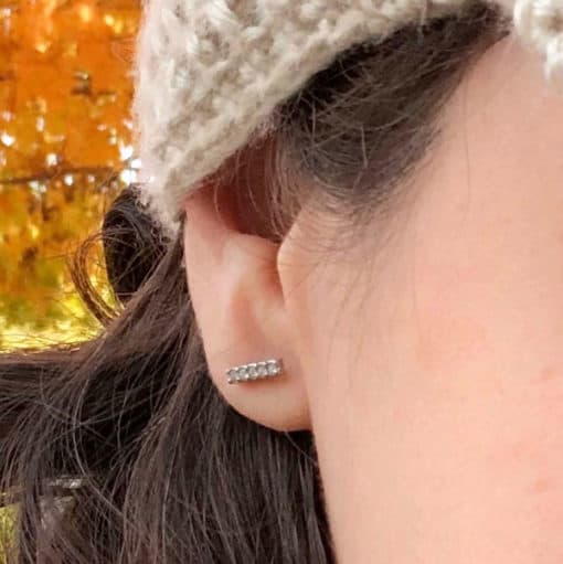 Be comfortable and stylish in ComfyEarrings. Featuring 5 Crystal Clear CZ gems and 316L Surgical Grade Stainless Steel bars, posts, and backs. Posts are standard width (18 gauge/1.0 mm). Length of post is 6.0 mm long, which is "one size fits most." If you're ordering for small ears, please request free clear spacers in the "order notes."