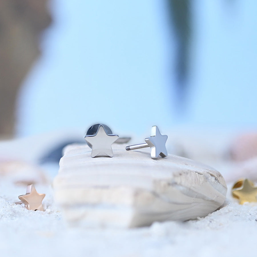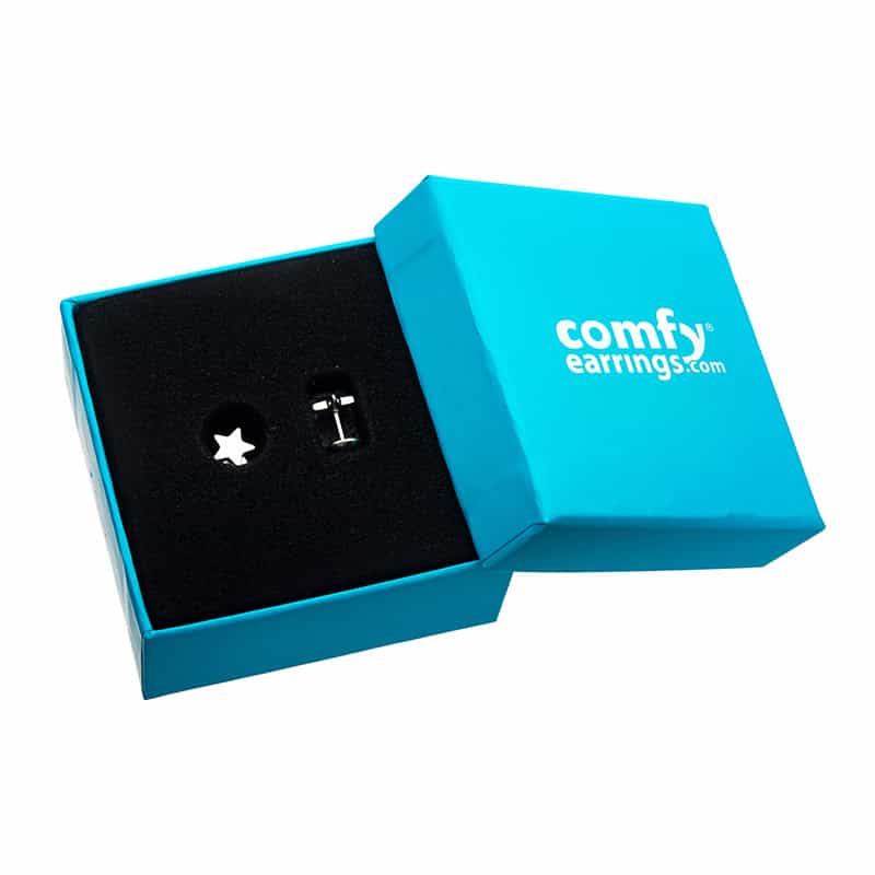 Be comfortable and stylish in ComfyEarrings. Featuring 316L Surgical Grade Stainless Steel stars, posts, and backs. Posts are standard width (18 gauge/1.0 mm). Length of post is 6.0 mm long, which is "one size fits most." If you're ordering for small ears, please request free clear spacers in the "order notes."